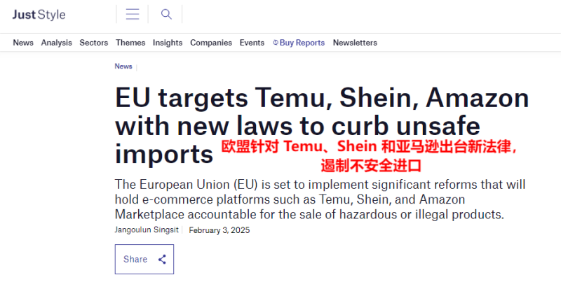 歐盟嚴打不合規(guī)電商 圖源:Just Style