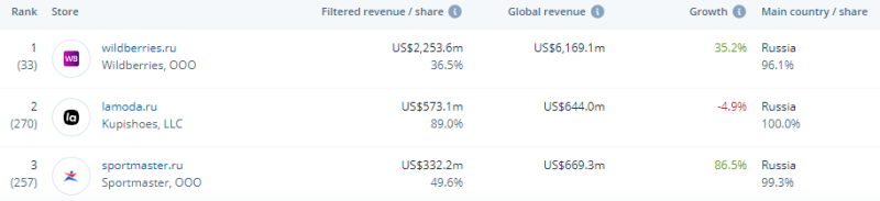 Wildberries時尚品類收入排名第一 圖源:ECDB