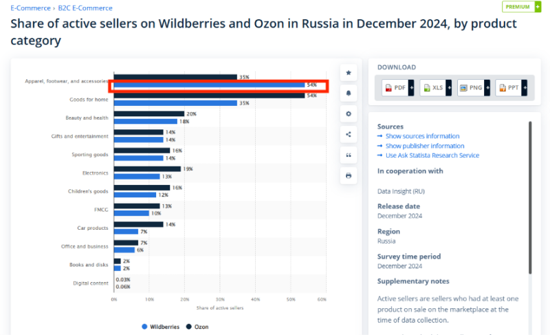 Wildberries時尚品類賣家占比高 圖源:Statista