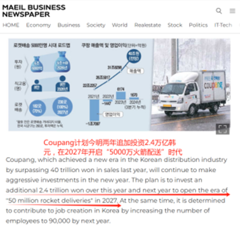 Coupang追加投資發(fā)展火箭配送 圖源:mk.co.kr