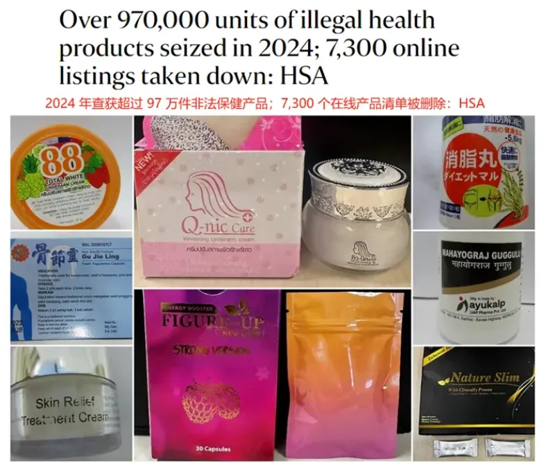 根據新加坡衛(wèi)生科學局(HSA)統(tǒng)計,2024年全年,該機構共查獲97萬件非法保健產品,并從電商平臺和社媒軟件上刪除了7351個非法產品鏈接,同時警告了2868名線上賣家。另外,還起訴了30名銷售和供應非法保健品的賣家。