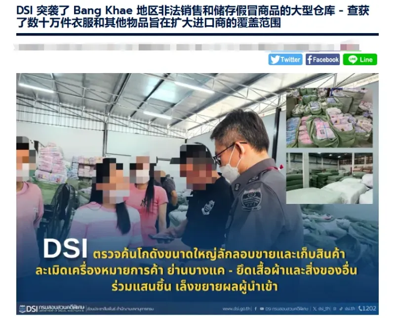 近日,泰國特別調查局(DSI)突襲了曼谷Bang Khae地區(qū)的三處倉庫,因為這些地方被懷疑非法銷售和儲存假冒商品。搜索結果發(fā)現(xiàn),其中一處倉庫中存在大量侵犯著名公司商標的服裝和其他產品。