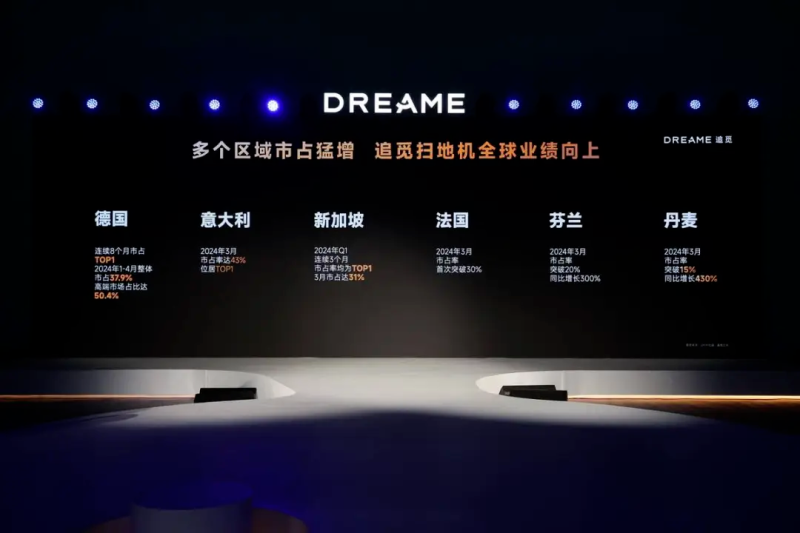 有了資本的支持,追覓一路混得風生水起。比如其旗下吸塵器、掃地機分別沖進歐洲速賣通、亞馬遜法國等榜單第一名,根據追覓官方發布的數據,2023年其掃地機全球銷量超過240萬臺,同比暴漲300%。在德國、意大利和新加坡市場,追覓掃地機市占率均位居第一。