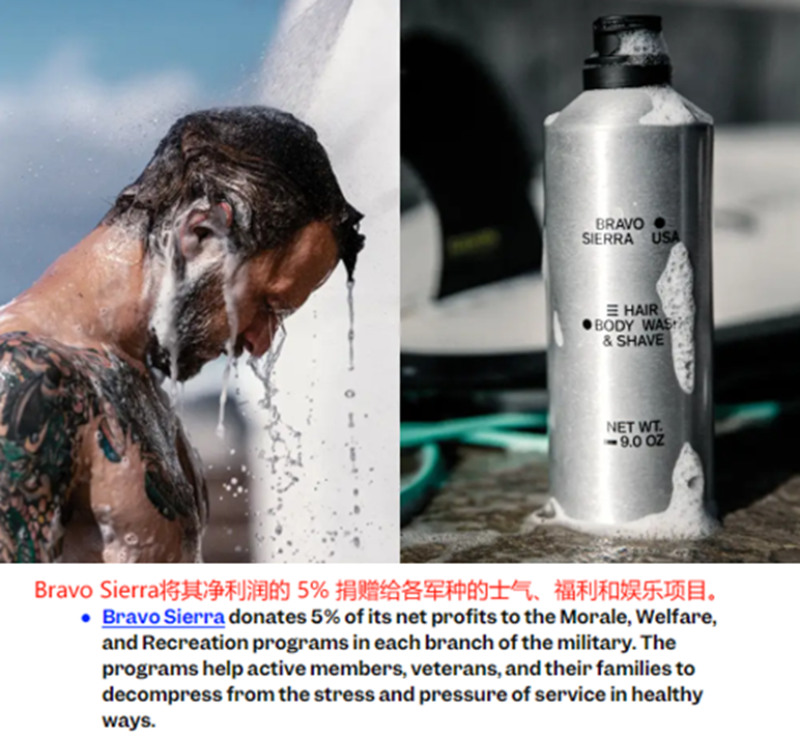 具體來說,Bravo Sierra聲稱自己是從軍事文化中汲取靈感,致力于為軍事場(chǎng)所研發(fā)合適的洗護(hù)產(chǎn)品,包括洗發(fā)水、沐浴露、剃須膏、除臭劑等,這些產(chǎn)品都講求實(shí)用主義,只使用單一的配方和簡(jiǎn)約的包裝,旨在讓極端條件下工作的軍人群體也能保持身體的潔凈和基礎(chǔ)護(hù)理。