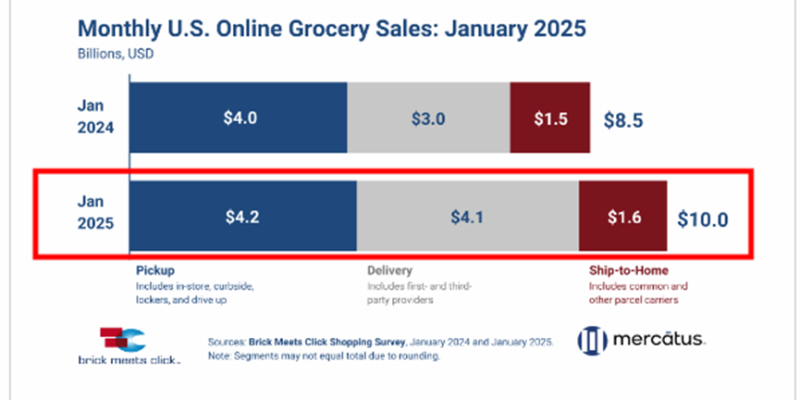 美國1月在線雜貨銷售額達100億美元 圖源:Brick Meets Click