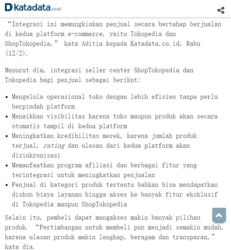 此次整合基于TikTok與印尼GoTo集團于2023年12月達成的戰略合作。根據協議,TikTok印尼電商業務與GoTo旗下Tokopedia合并,并由TikTok控股。2024年1月31日,TikTok正式完成交易,以8.4億美元收購Tokopedia 75.01%股份。自交易完成以來,雙方持續推動服務整合,尤其是在交易結算系統的優化方面。