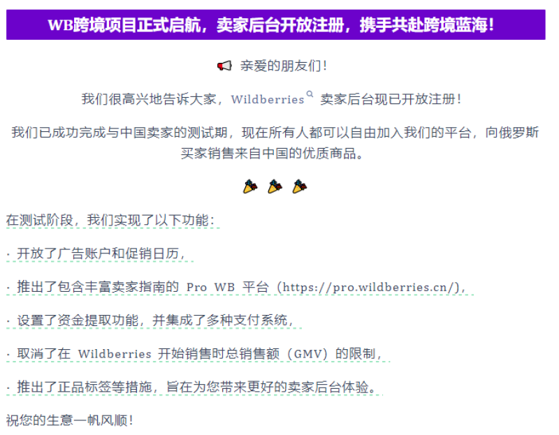 Wildberries向中國賣家全面開放 圖源:WILDBERRIES電商平臺