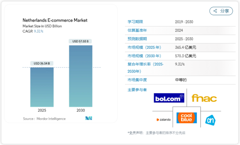 荷蘭電商市場增長 圖源:Mordor Intelligence