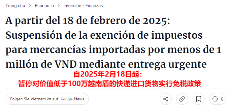比如在流量降幅最為明顯的越南地區,進口關稅政策即將生效。自2025年2月18日起,越南全面廢除通過快速寄送的價值100萬越南盾以下的進口貨物免稅政策,所有跨境小額包裹都將被征收進口稅和增值稅。