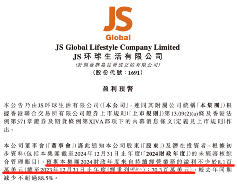 2024年預期溢利8.1百萬美元 圖源:JS環球生活