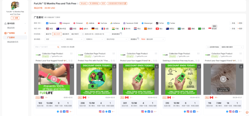 日前,一款驅蟲項圈火出圈了,這是因為春天寵物戶外活動增加,而驅蟲項圈又是一款兼備美觀和驅蟲功能的用品,自然受到了大量消費者的青睞。數據顯示,寵物品牌FurLife驅蟲項圈在多個市場廣告投放大增,近一個月新投素材數量大漲超600%。