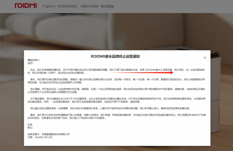 從ROIDMI的通知中可以發現,其終止運營的很大一部分原因是市場環境的變化,ROIDMI表示,“我們的目標始終是為用戶提供最好的產品和服務,遺憾的是,當前的商業環境和公司資源已不允許我們繼續以您期望的方式運營。”