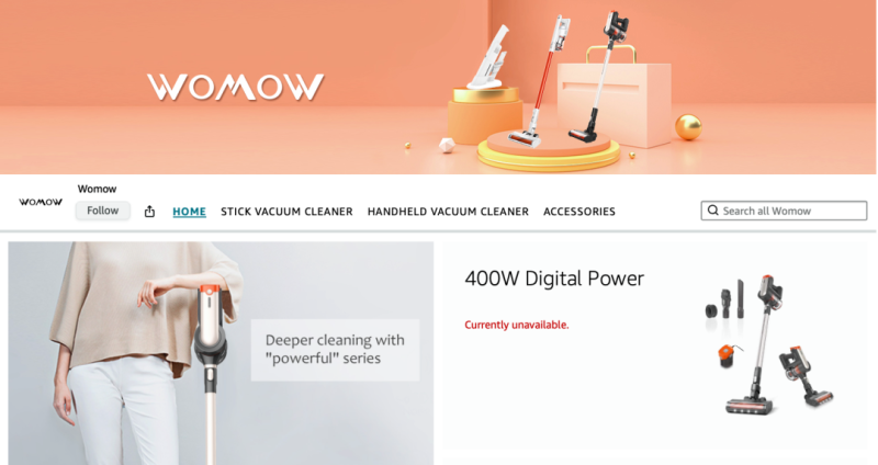近日,亞馬遜清潔電器類目的知名品牌Womow似乎出現了重大經營問題,打開Womow在亞馬遜上的品牌旗艦店,里面所有的產品鏈接均都標注著“Currrently Unavailable”(不可售)。