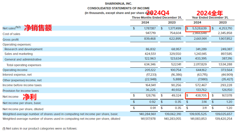 近日,SharkNinja發布了最新年度財報。數據顯示,2024年該公司凈銷售額達55.286億美元,同比增長30%;凈利潤達4.387億美元,同比大漲162.6%。要知道,在SharkNinja旗下四大產品類別中,清潔電器類的凈銷售額便是最多的。