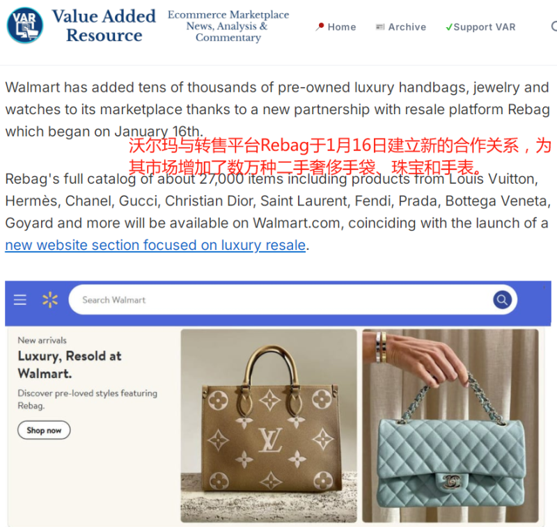 沃爾瑪上線二手奢侈品 圖源:Value Added Resource