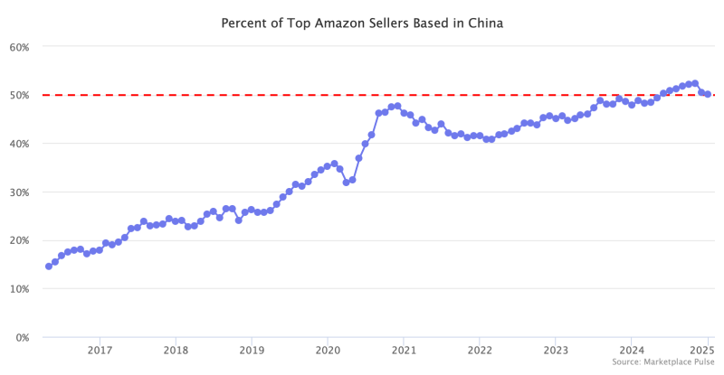 中國賣家占比超50% 圖源:Marketplace Pulse