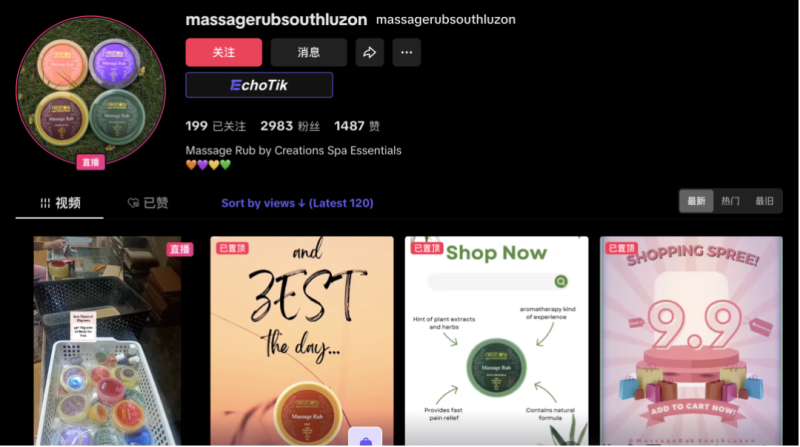再加上,小店充分利用了TikTok平臺的優勢,通過官方賬號直播和與TikTok達人的合作,實現了產品的快速推廣。這些達人大多是中腰部達人,擁有一定的粉絲基礎和影響力,他們的推薦為按摩膏帶來了大量的曝光和銷量。此外,Massage Rub South Luzon還通過官方賬號直播的方式帶貨,主要采用買贈的方式吸引消費者購買,大大提升了產品的曝光度。