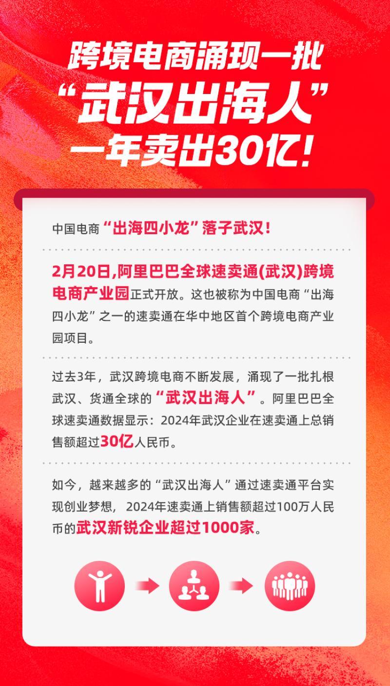 數(shù)據(jù)顯示,2024年武漢企業(yè)在速賣通上總銷售額超過(guò)30億人民幣,年GMV超過(guò)100萬(wàn)人民幣的武漢新銳企業(yè)超過(guò)1000家。
