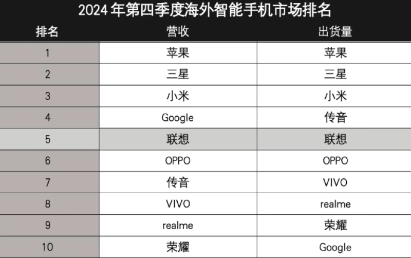 其實在此前,國際數(shù)據(jù)公司IDC也發(fā)布了一則數(shù)據(jù):2024年第四季度,聯(lián)想手機在海外市場保持著穩(wěn)健的增長態(tài)勢,在收入方面同比增長10.6%,排名第五,在出貨量方面同樣以15%的同比增長排名第五。