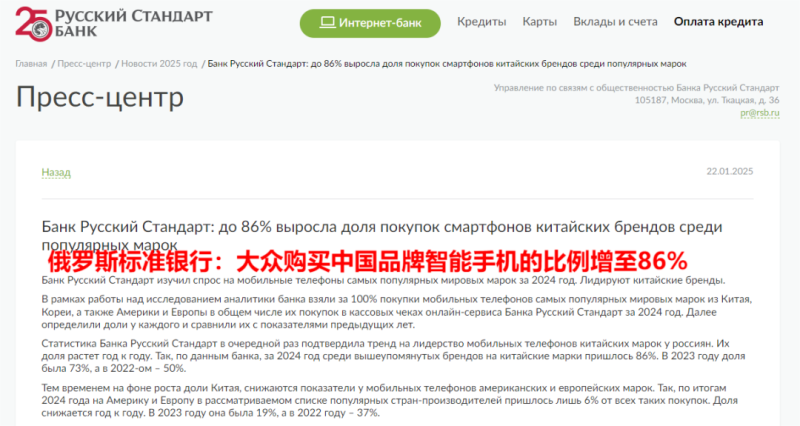 就在上個月,俄羅斯標準銀行發(fā)布了2024年俄羅斯最受歡迎手機品牌的研究報告。結(jié)果顯示,大眾購買中國品牌智能手機的比例高達86%,相比2023年和2022年分別增長了13%和36%。
