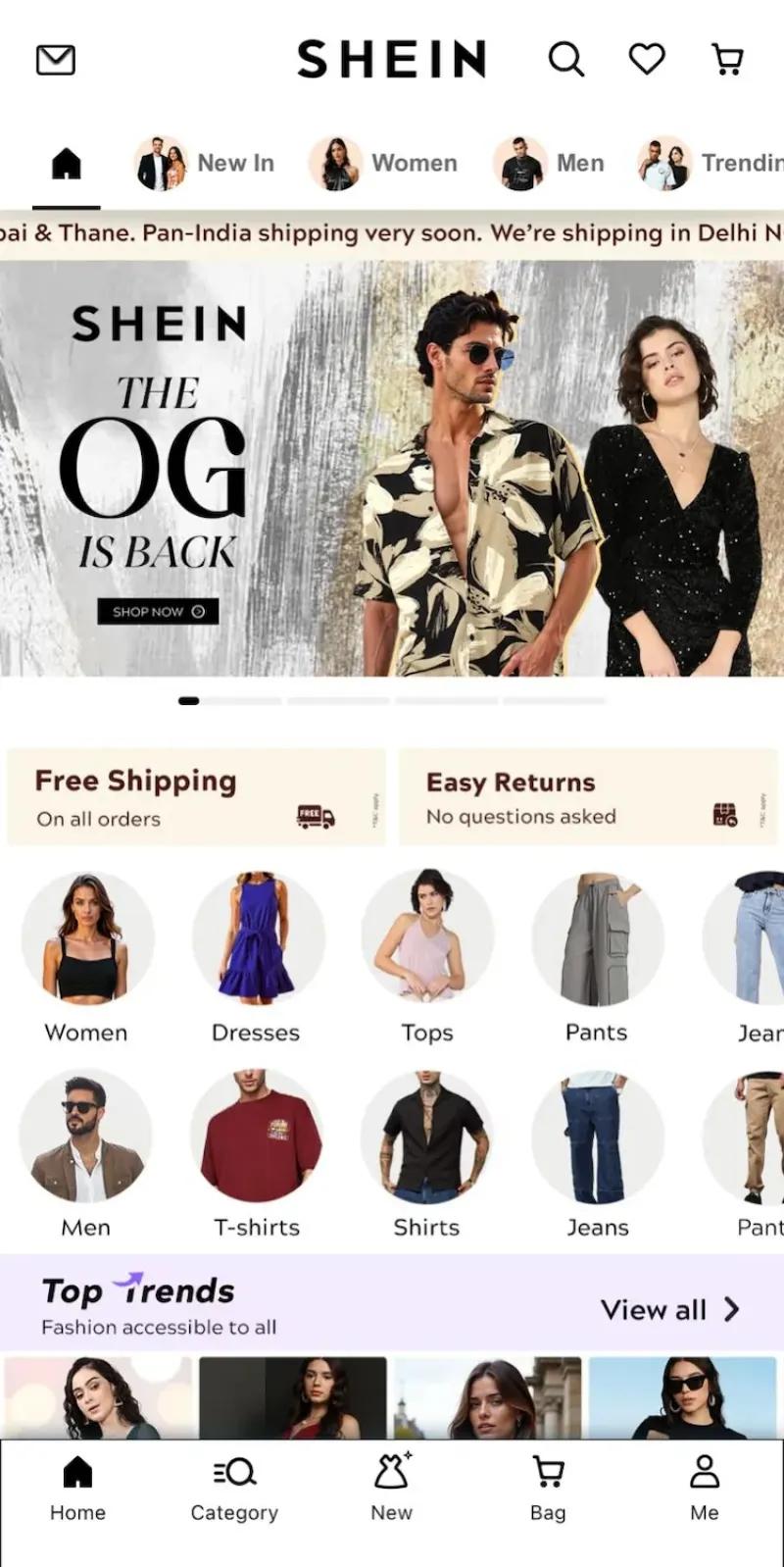 此外,今年2月初,Shein通過與印度當?shù)仄髽I(yè)集團Reliance的零售連鎖店合作,在印度重新上市,將在包括新德里、班加羅爾和孟買在內的部分城市提供送貨服務,并計劃很快在印度各地推廣該服務。