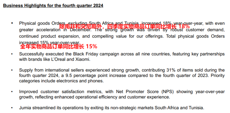 如果看Jumia的運營效率或許會更有說服力。2024年,Jumia的實體商品訂單同比增長15%,第四季度同比增幅18%,但這期間營銷成本卻沒有同步增加,而且這還是在年末大促密集開展的情況下。