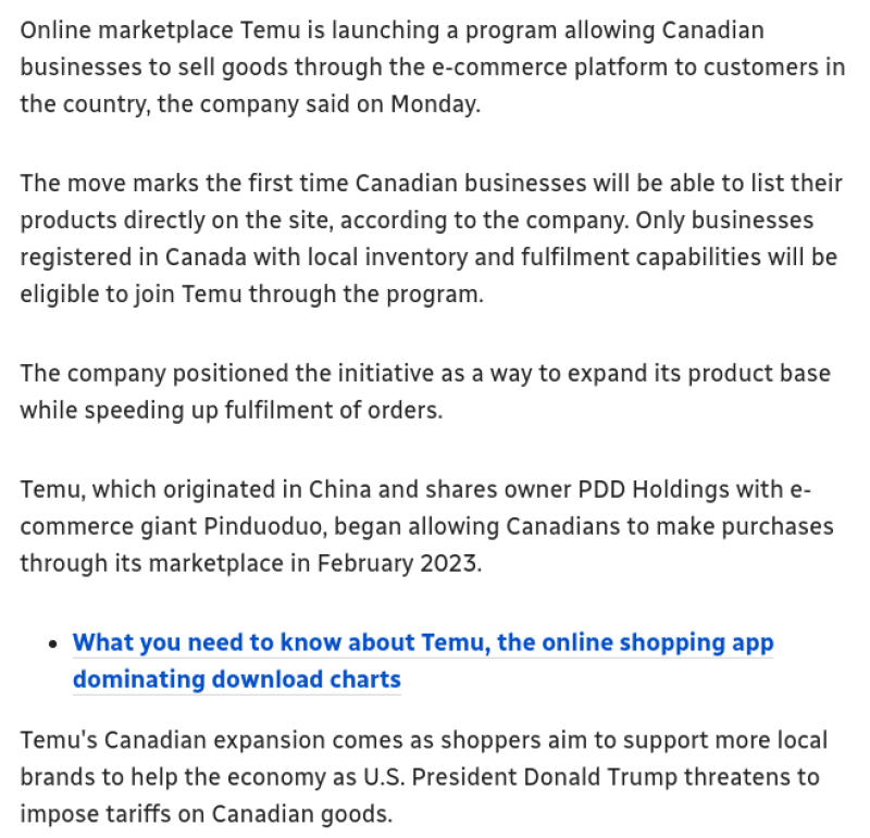 自2023年2月進入加拿大市場以來,TEMU已經憑借低價的商品吸引了大量消費者。通過這一計劃,TEMU不僅為加拿大賣家提供了進入更大市場的機會,也進一步加強了平臺的本地化發展和消費者的購物體驗。