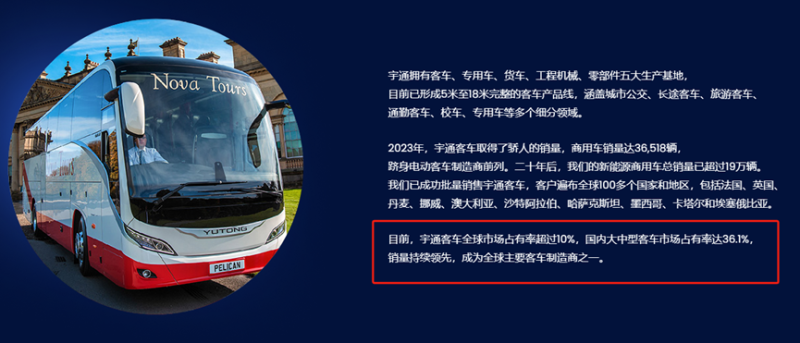 宇通客車全球市場占有率超10% 圖源:宇通科技