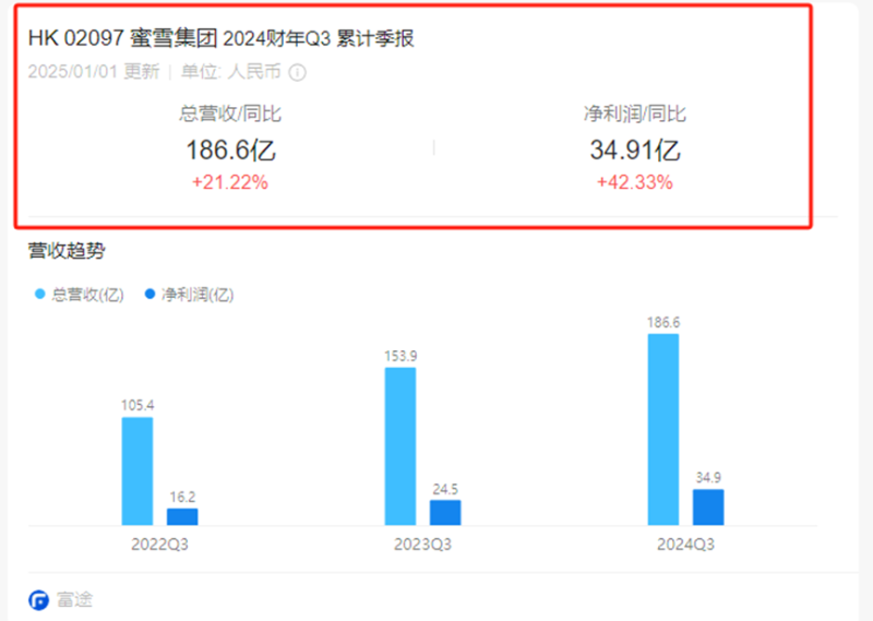 蜜雪冰城營收業績節節攀升 圖源:富途