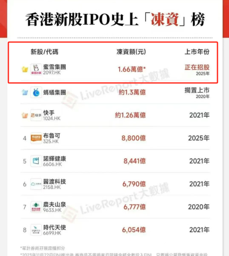 蜜雪冰城認購火曝創港股新紀錄 圖源:LiveReport大數據
