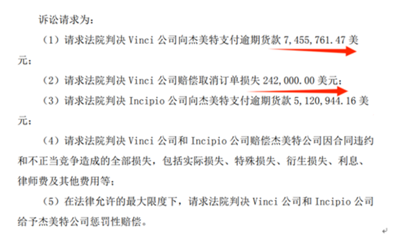 據(jù)悉,杰美特于2016年于一家美國(guó)公司Incipio Technologies,Inc.簽訂主供應(yīng)商合同,但從2019年起,Incipio Technologies就開(kāi)始拖欠杰美特公司貨款,截至起訴當(dāng)天,Incipio Technologies累計(jì)拖欠貨款已達(dá)到512萬(wàn)美元。