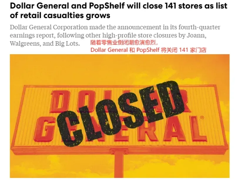 最近,Dollar General在其第四季度和2024財年收益報告中透露,在評估了各個門店的業績、運營狀況和未來預期表現后,公司計劃在本財年第一季度關閉96家Dollar General商店,以及45家家居裝飾店pOpshelf,其中6家pOpshelf門店改建為Dollar General門店。