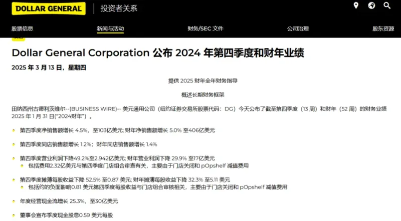 財報數據 圖源:Dollar General