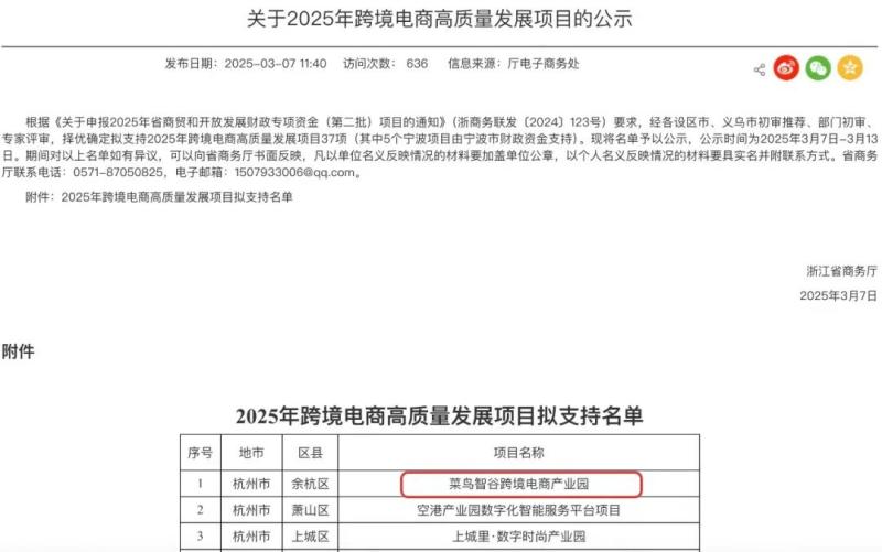 3月19日消息,菜鳥智谷近日憑借創新的跨境電商產業生態、領先的數字化服務能力及顯著的行業影響力,成功入選浙江省2025年跨境電商高質量發展項目。