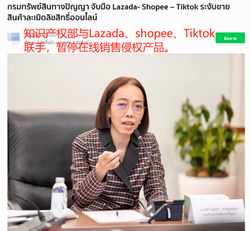再比如,早在2021年,泰國知識產權部就與相關政府部門和電商平臺簽署“關于保護互聯網知識產權的諒解備忘錄”,這一協議規定電商平臺需下架假冒偽劣產品。今年2月,該部與Shopee、Lazada、TikTok等平臺合作,暫停銷售約1670件侵犯知識產權的商品,總價值超過7300萬泰銖。
