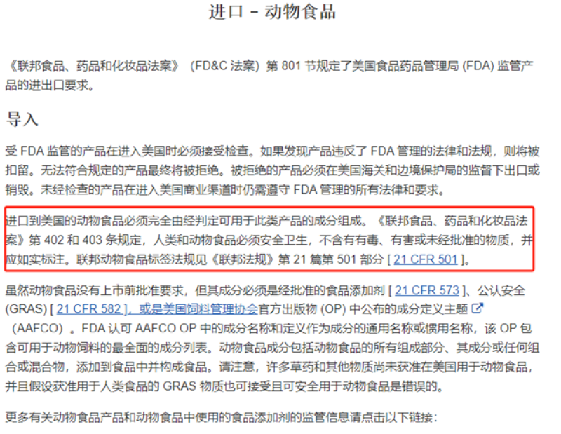 美國FDA有關進口動物食品的要求 圖源:FDA