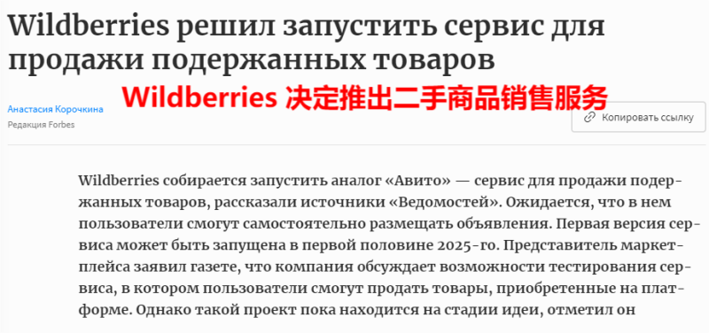 Wildberries計劃推出轉售服務 圖源:forbes.ru
