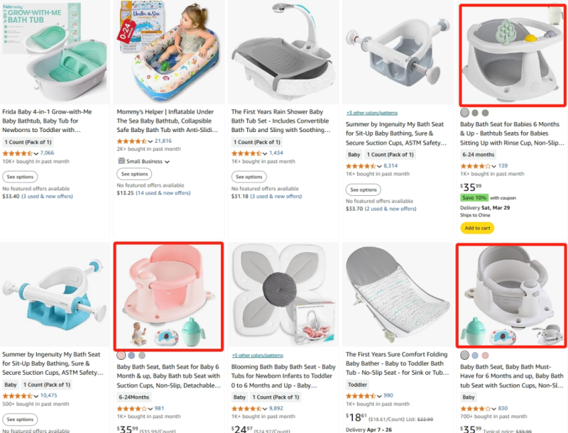 在亞馬遜上有這樣一款嬰兒沐浴椅,它外觀十分可愛,可拆卸扶手能使嬰兒輕松進出,配備的吸盤底座可以將其固定在地板或者浴缸里,增加洗浴的安全性。目前來看,在亞馬遜上相關產品鏈接月銷量最高可達5000+,可以說是相當不錯的一個成績。