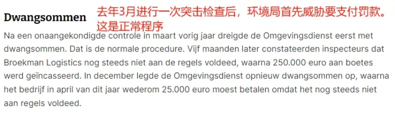 到了去年4月份,該公司又被罰款2.5萬歐元,勞工監察局和北林堡安全區還分別處以10萬歐元和8.5萬歐元的罰款,罰款總額高達46萬歐元(約合人民幣361萬),此外環境局還警告要追加50萬歐元的罰款。
