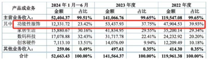 按業(yè)務(wù)類型來區(qū)分,以電加熱服飾品牌ORORO為主力的服裝產(chǎn)業(yè)可以說撐起了尚睿科技的半邊天,2023年,功能性服飾業(yè)務(wù)給尚睿科技帶來了5.43億元的營收,占公司總收入的37.75%。即使是由冬轉(zhuǎn)春、溫度升高的2024年上半年,功能性服飾也給尚睿科技貢獻(xiàn)了23.42%的營收。