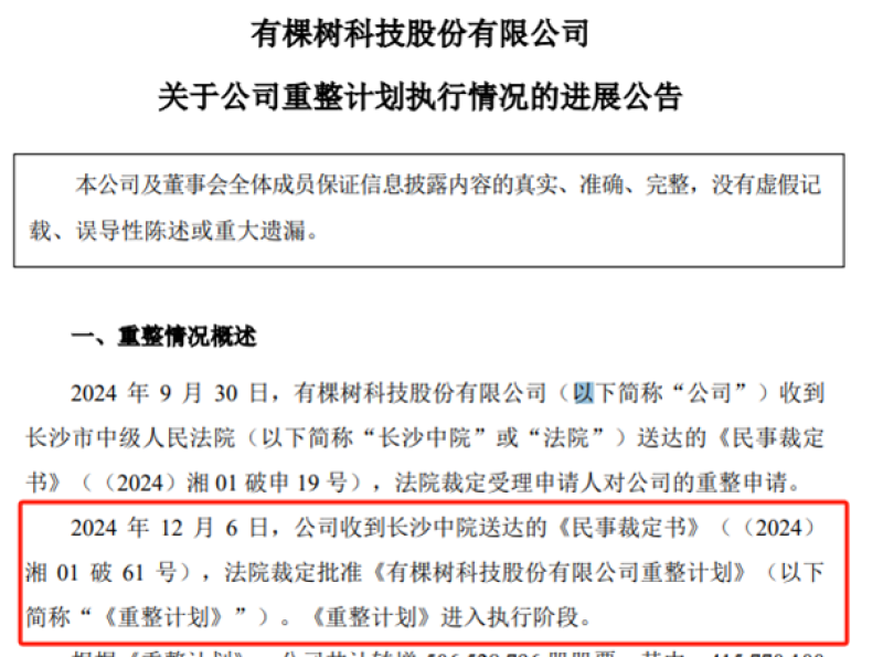 重整計(jì)劃落地,有棵樹要復(fù)活了