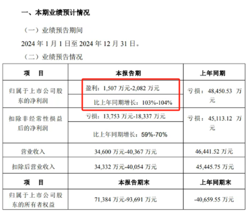 最新業(yè)績預(yù)報(bào)顯示,2024年,有棵樹預(yù)計(jì)實(shí)現(xiàn)營收3.46億元至4.04億元,低于上年同期的4.64億元;歸母凈利潤達(dá)1507萬元至2082萬元,同比大漲103%至104%,成功實(shí)現(xiàn)扭虧為盈