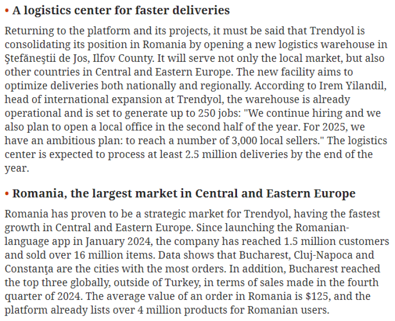 憑借強勁的擴張步伐、不斷增長的用戶基礎以及對本地市場的深度投資,Trendyol正加速在中東歐市場的發展,特別是在羅馬尼亞,其本地化戰略、賣家支持計劃及技術投資將進一步鞏固其在該地區的領先地位。