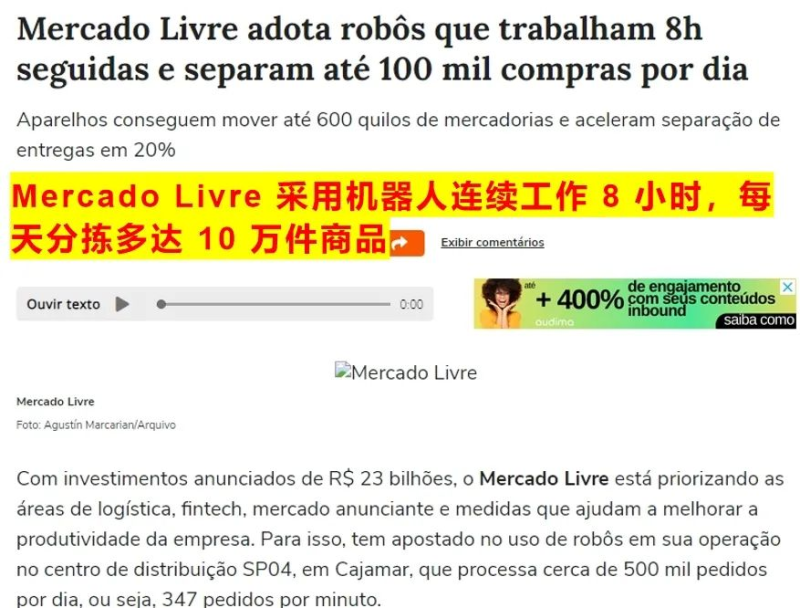 除了沃爾瑪,拉美電商平臺MercadoLibre(美客多)也同樣早已開始朝著更加智能化的方向前進。同樣在去年年終,美客多便宣布在巴西第二大配送中心引入機器人,以加快產(chǎn)品揀選過程。