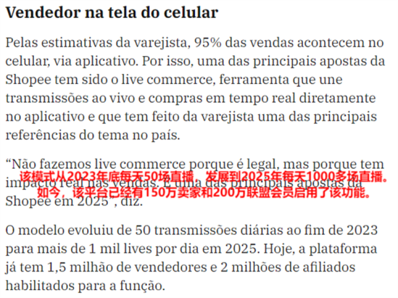 Shopee直播電商貢獻(xiàn)突出 圖源:exame