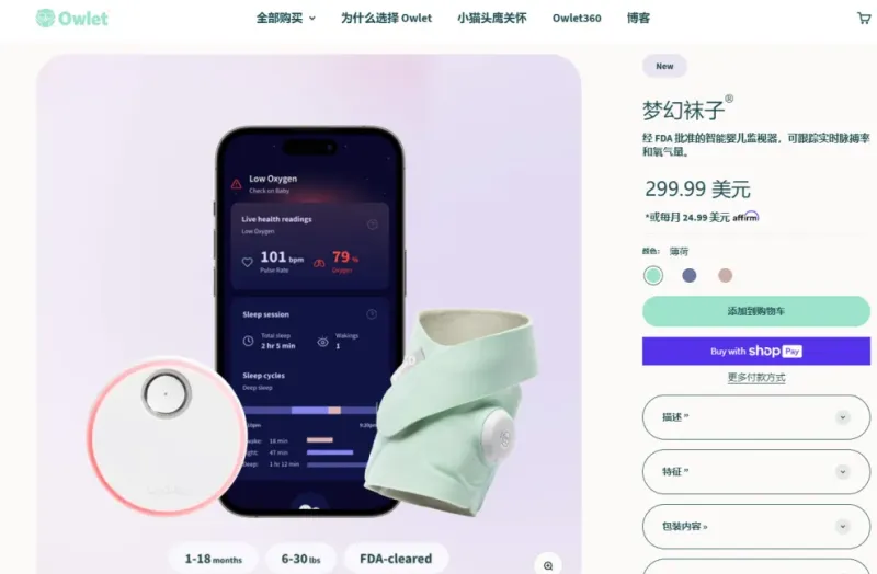2013年,Owlet創始人Kurt Workman出于對自己未出世寶寶的健康的擔憂,決定開發一款智能檢測設備;2015年,首批Smart Sock產品正式上市;2021年,Owlet成功在紐約證券交易所掛牌上市,但好景不長,產品很快引起了美國食品藥品監督管理局(FDA)的監管。