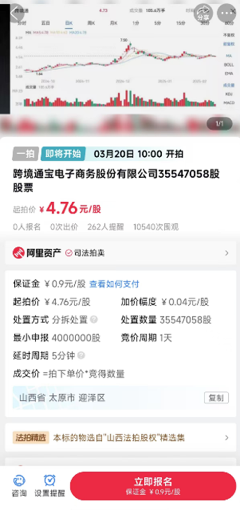 跨境通再次被司法拍賣 圖源:淘寶