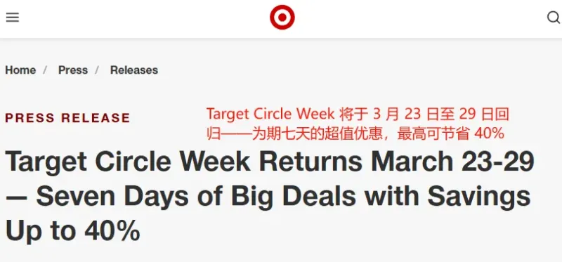 除了直接降價、推出低價產品外,今年3月,塔吉特還舉辦“Target Circle Week”大促,包括服裝、戶外家具、家具必需品以及美容產品等都多種產品都進行了折扣促銷,進一步刺激了消費者的購物欲。