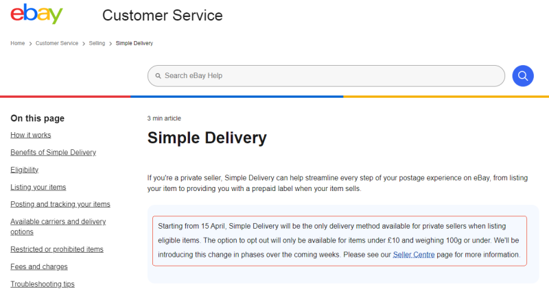 4月2日消息,eBay英國站宣布,從4月15日起,個(gè)人賣家在發(fā)布符合條件的商品時(shí)必須使用eBay簡易配送(Simple Delivery),以提升交易效率和物流體驗(yàn)。僅部分低價(jià)商品、大件商品及本地提貨商品可例外使用其他配送方式。簡易配送是eBay推出的一體化物流解決方案,旨在簡化賣家操作、降低配送成本,并加快資金到賬速度。