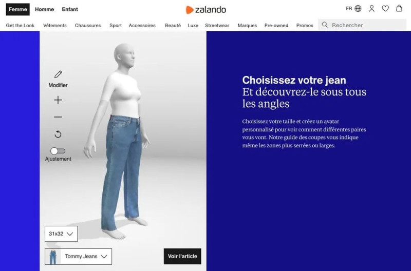 為了解決退貨難題,Zalando也是使盡了各種手段。2023年4月,其在25個市場推出虛擬試衣間,消費者可以通過輸入身高、體重和性別來創建3D身體模型,然后虛擬試穿技術判斷服裝是否合身。